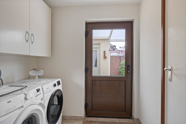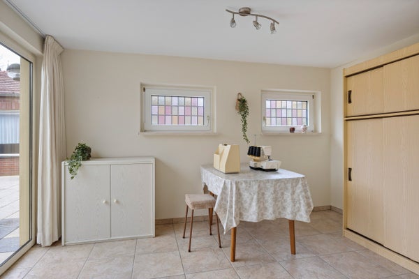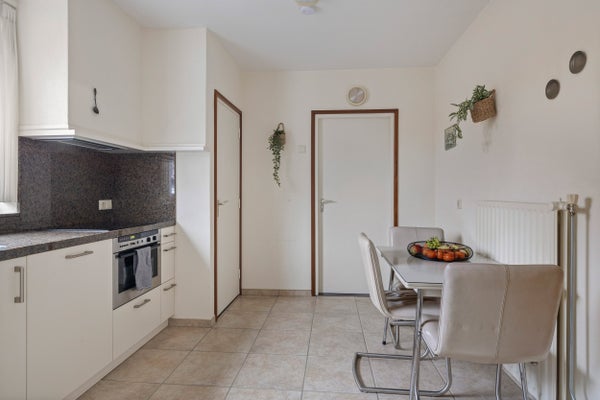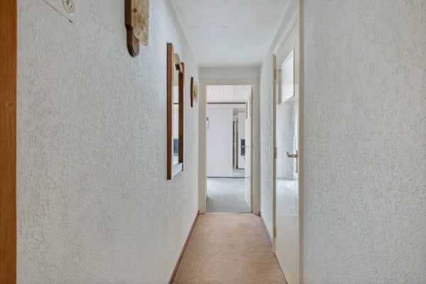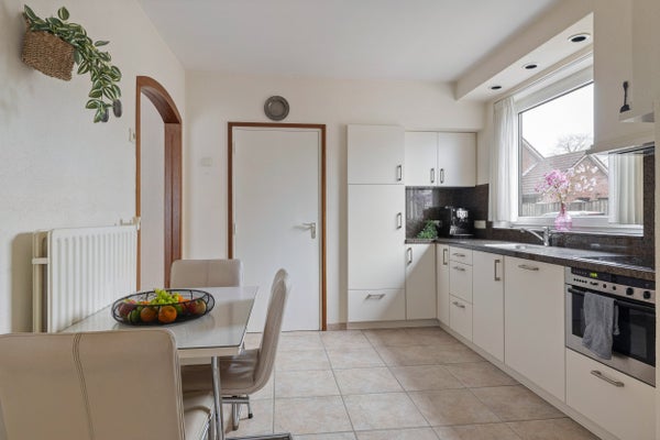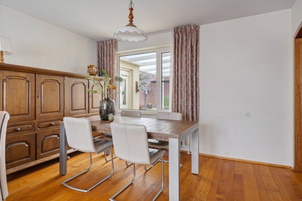 De woning is centraal gelegen met winkels, scholen en natuur dichtbij. De hal leidt naar een functionele halfopen keuken en een lichte woonkamer. De garage biedt een droge verbinding naar het huis. De tuin, beschut en groen, zorgt voor een fijne buitenruimte. Deze woning combineert comfort met mogelijkheden in een rustige omgeving.