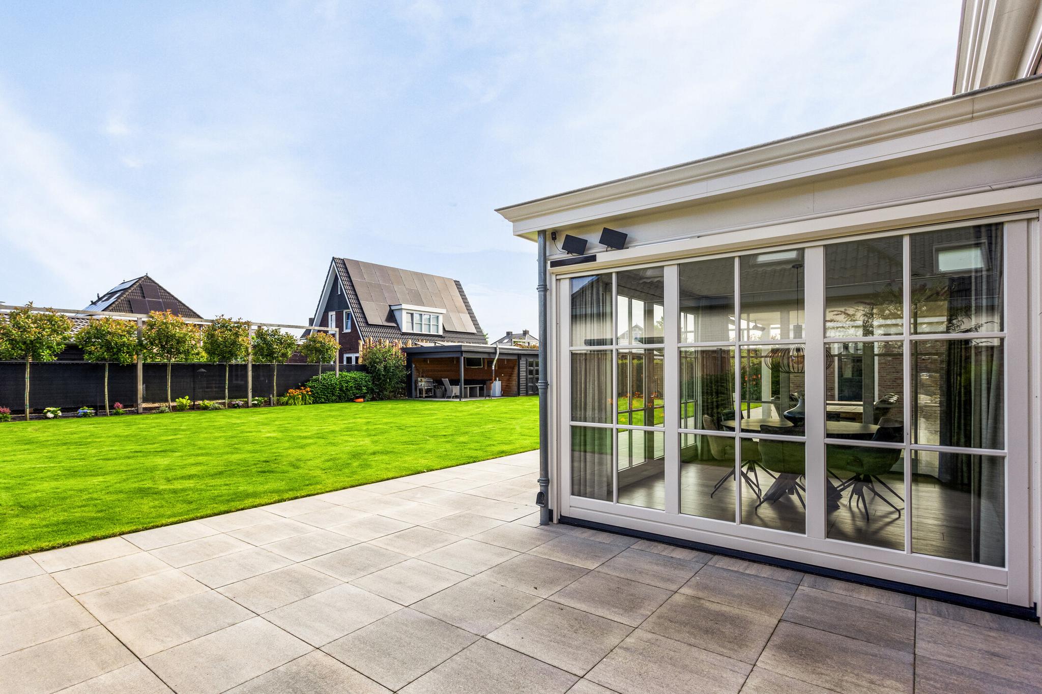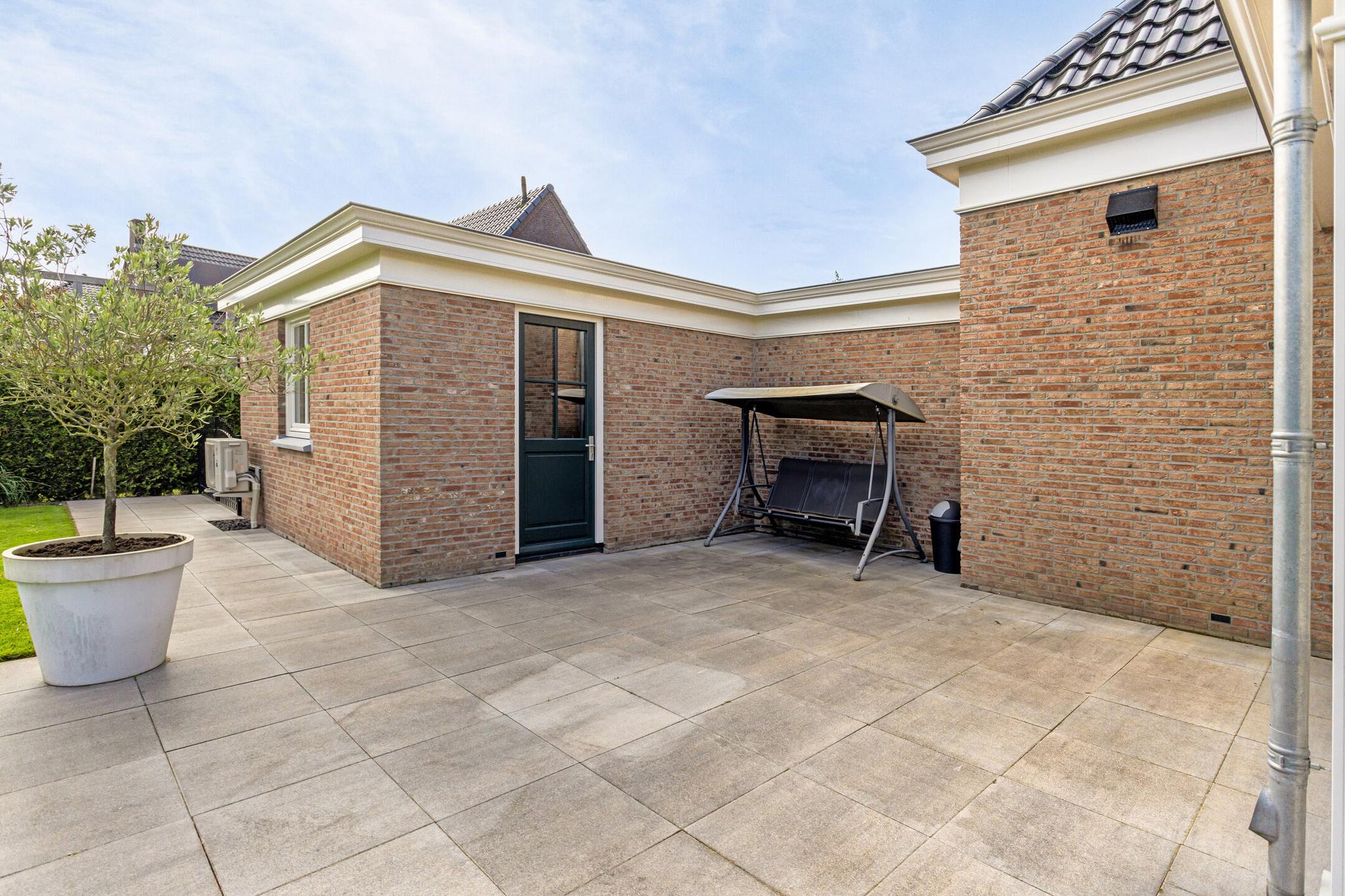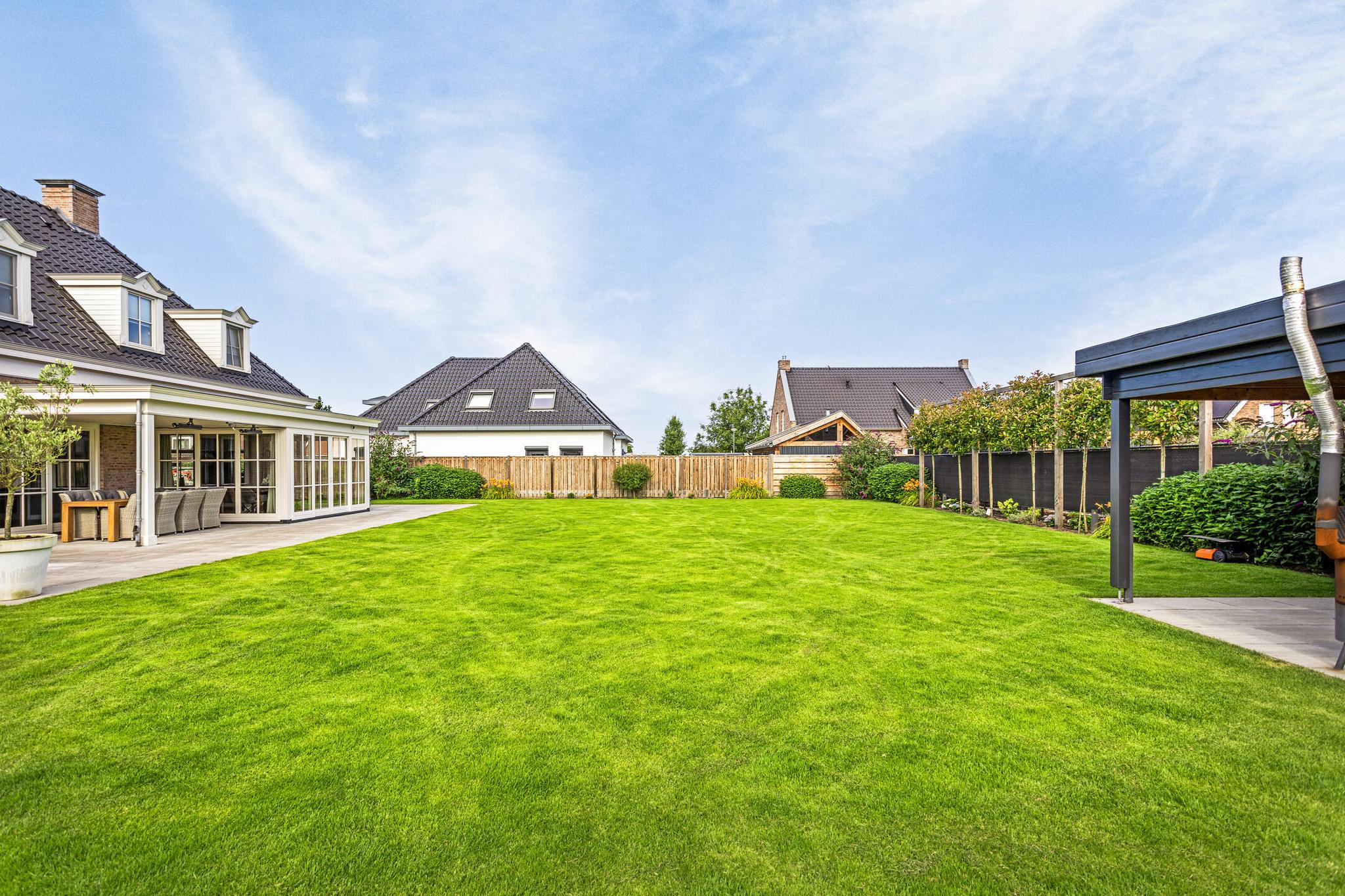 Deze notariswoning, gebouwd in 2019, biedt een woonoppervlakte van 192 m² op een perceel van 1.080 m². Met 7 kamers, waaronder 3 slaapkamers op de eerste verdieping, en een luxe leefkeuken aansluitend op de royale woonkamer met serre, is het een ideale gezinswoning. De keuken is voorzien van moderne apparatuur en een kookeiland. De woning beschikt over een bijkeuken en een grote garage, waar eventueel een extra slaapkamer en badkamer kunnen worden gerealiseerd. Het energielabel A++ wordt ondersteund door 26 zonnepanelen en een warmtepomp voor verwarming en koeling. De tuin is volledig aangelegd met een beregeningsinstallatie en tuinhuizen, terwijl een robotmaaier het onderhoud van het gazon vergemakkelijkt. De woning is goed bereikbaar met mogelijkheden voor parkeren op eigen terrein.