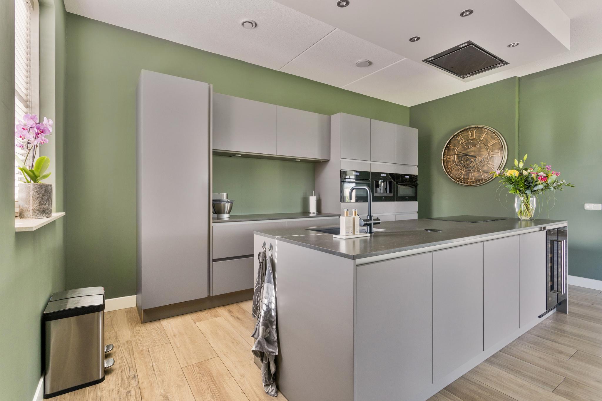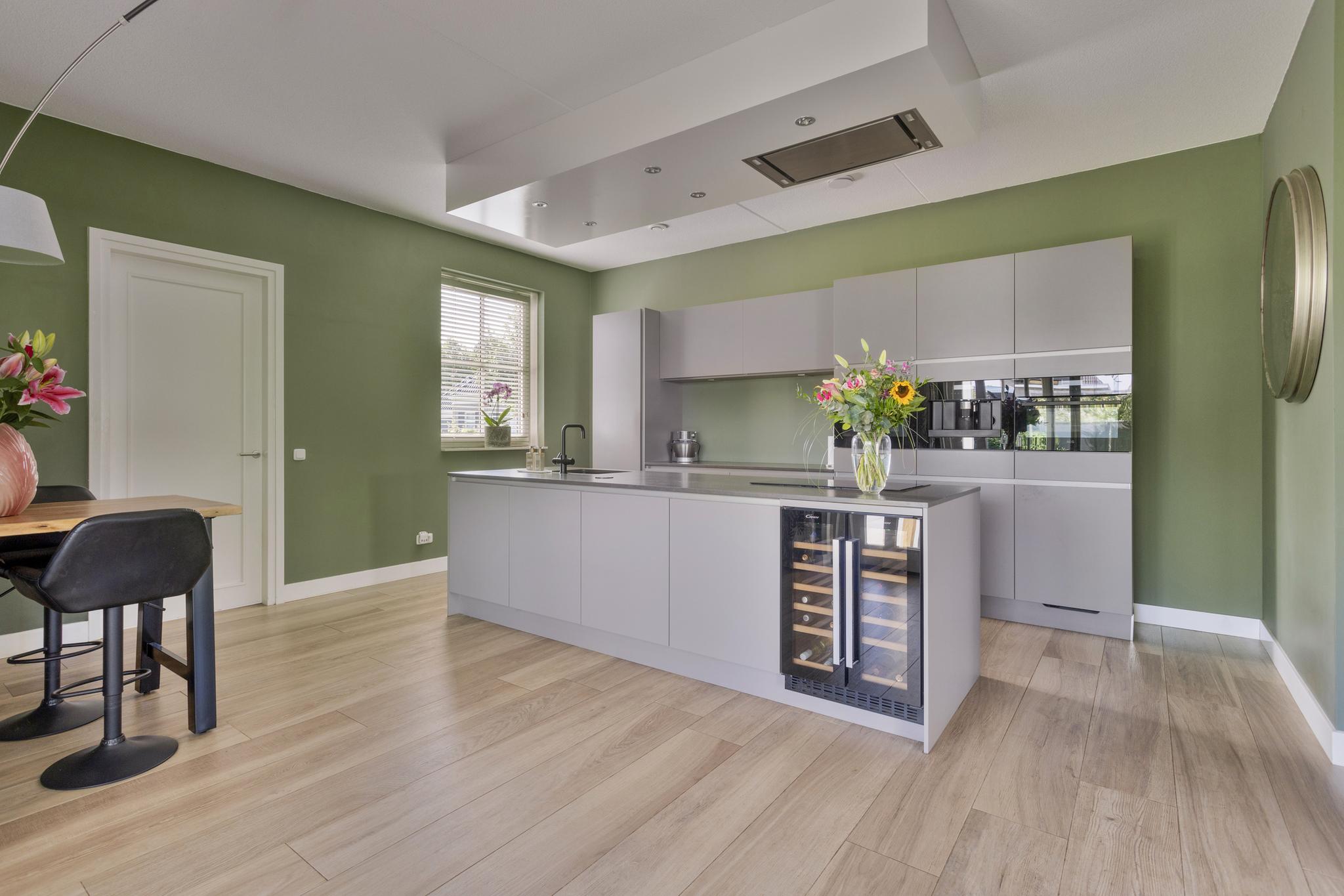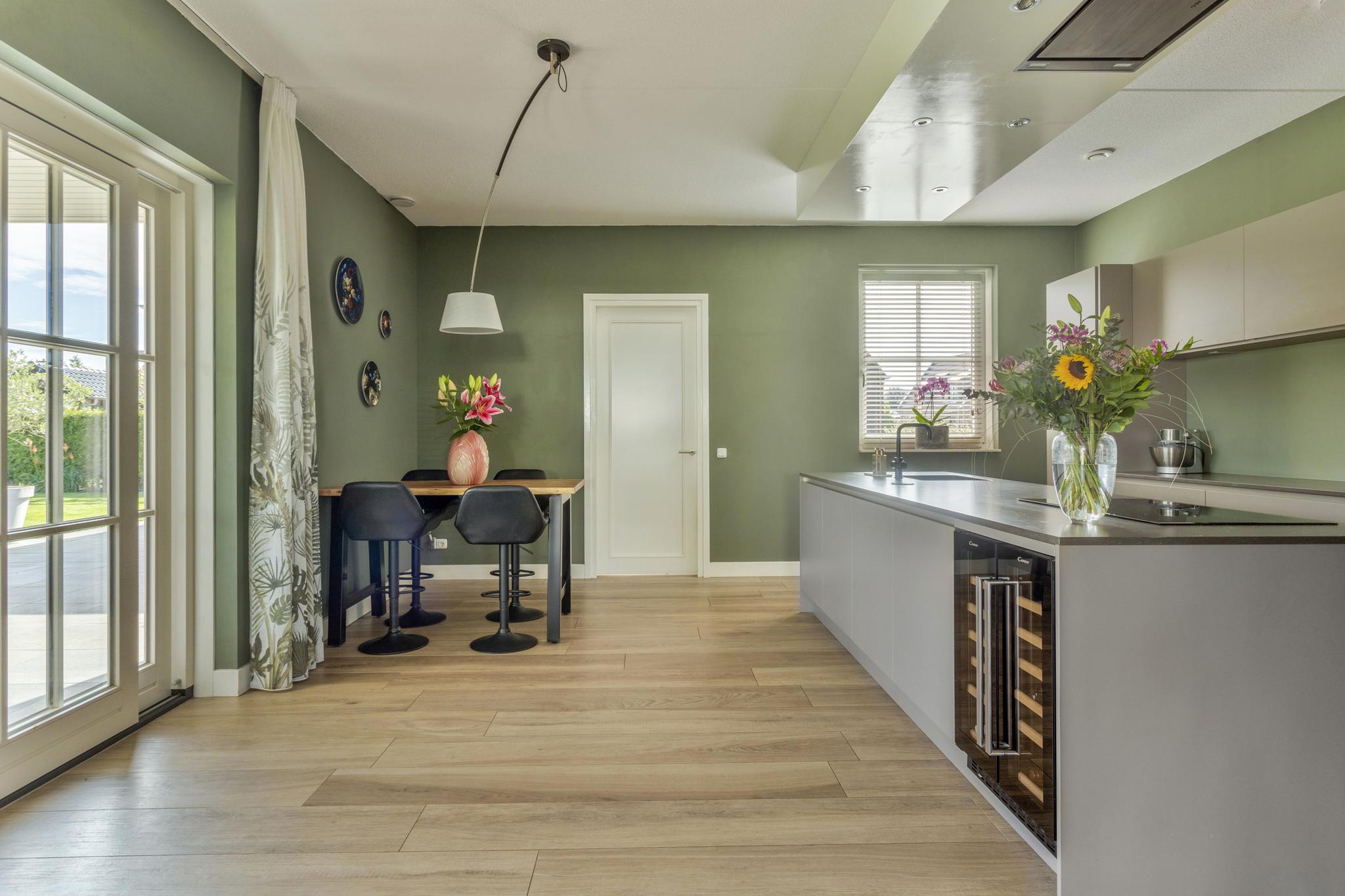Deze notariswoning, gebouwd in 2019, biedt een woonoppervlakte van 192 m² op een perceel van 1.080 m². Met 7 kamers, waaronder 3 slaapkamers op de eerste verdieping, en een luxe leefkeuken aansluitend op de royale woonkamer met serre, is het een ideale gezinswoning. De keuken is voorzien van moderne apparatuur en een kookeiland. De woning beschikt over een bijkeuken en een grote garage, waar eventueel een extra slaapkamer en badkamer kunnen worden gerealiseerd. Het energielabel A++ wordt ondersteund door 26 zonnepanelen en een warmtepomp voor verwarming en koeling. De tuin is volledig aangelegd met een beregeningsinstallatie en tuinhuizen, terwijl een robotmaaier het onderhoud van het gazon vergemakkelijkt. De woning is goed bereikbaar met mogelijkheden voor parkeren op eigen terrein.