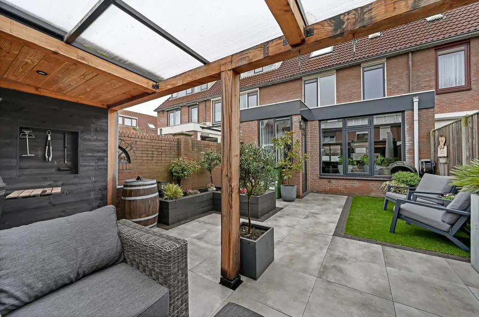 - De tussenwoning heeft een woonoppervlakte van 120 m² en beschikt over 5 kamers, waarvan 3 slaapkamers;