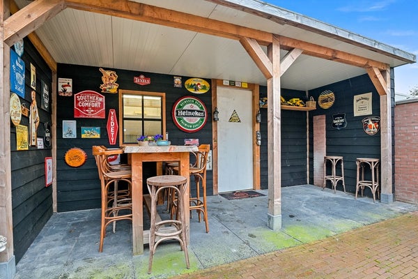 • Dubbele deuren naar achtertuin met grote schuur en overkapping