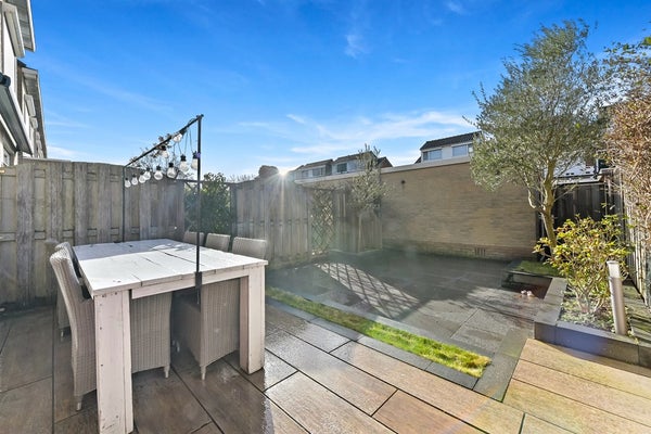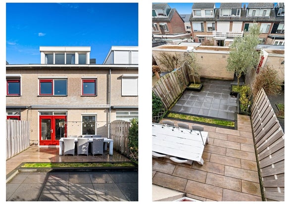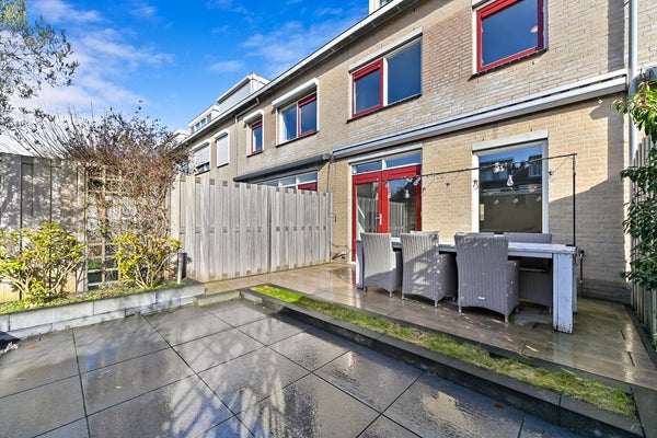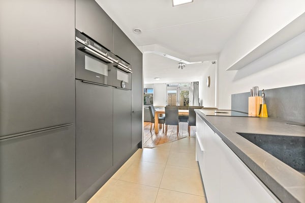 Via het autovrije voetpad aan de voorzijde bereikt u de entree van de woning. In de hal bevinden zich de meterkast, het toilet met wandcloset en fonteintje en de trapopgang naar de eerste verdieping. Vervolgens stapt u in de lichte en breed georiënteerde woonkamer. De grote raampartijen aan de achterzijde zorgen voor een prachtige lichtinval en vrij uitzicht op de fraai aangelegde achtertuin met berging en achterom. Dankzij de openslaande deuren staat de woonkamer in directe verbinding met buiten, waardoor u op zonnige dagen optimaal kunt genieten van het binnen- en buitenleven. De achtertuin is ruim 10 meter diep en gunstig gelegen op het zuidwesten, waardoor u hier volop van de middag- en avondzon geniet. In de tuin is tuinverlichting aanwezig welke functioneert met behulp van sensoren. Achterin de tuin staat een stenen berging waar u met gemak de fietsen van het gehele gezin kunt stallen. De woonkamer is ruim en praktisch ingedeeld en beschikt over een trapkast voor extra bergruimte. Aan de voorzijde van de woning bevindt zich de moderne keuken in parallel opstelling met verdiept aanrechtblad en aangrenzende bar. De keuken is enkele jaren gelegen volledig gerenoveerd en stijlvol afgewerkt. Naast de diverse opbergmogelijkheden is de keuken voorzien van hoogwaardige inbouwapparatuur waaronder een koel-vrieskast, vaatwasser, Bora inductiekookplaat met geïntegreerde afzuiging, combi-oven en spoelbak met Quooker. Kookfanaten kunnen hier met veel plezier aan de slag!
