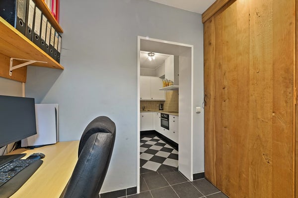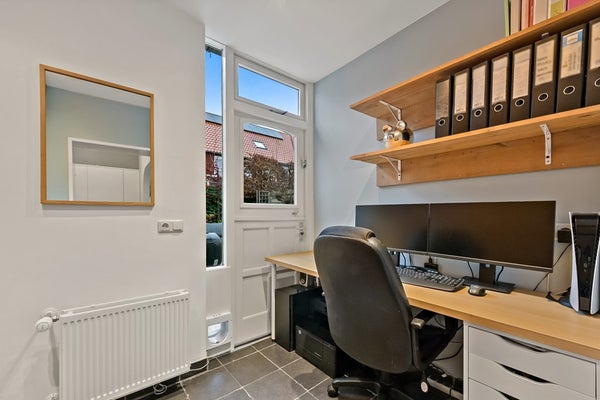 • Aangebouwde bijkeuken/werkkamer (ca. 6 m²) met grote bergkast voor o.a. wasmachine/droger en “boeren”deur naar de tuin.