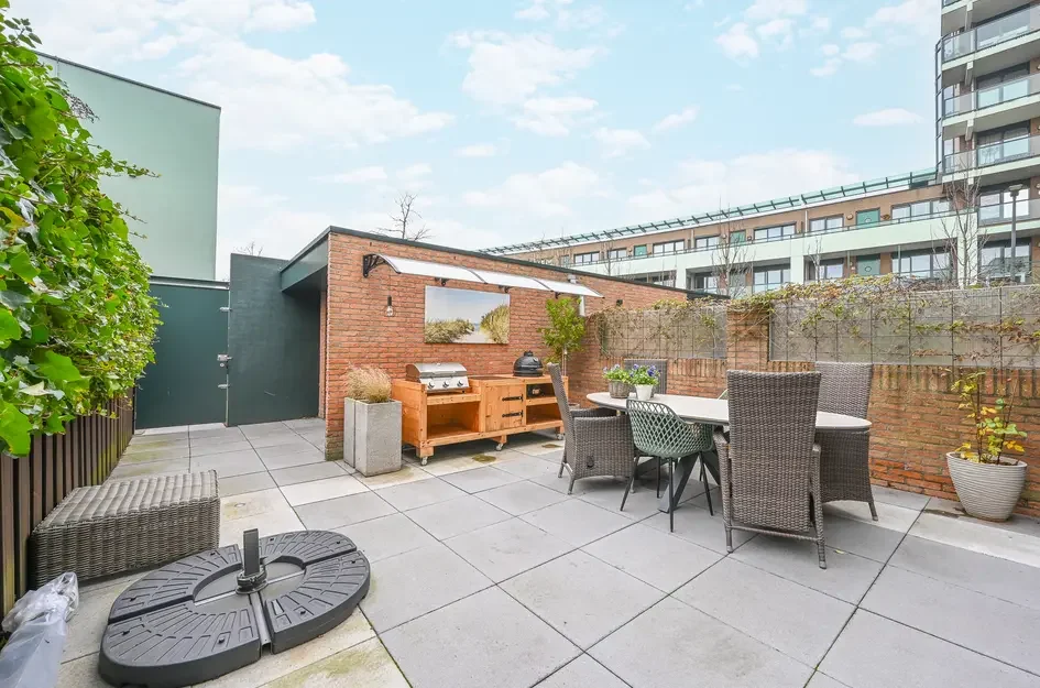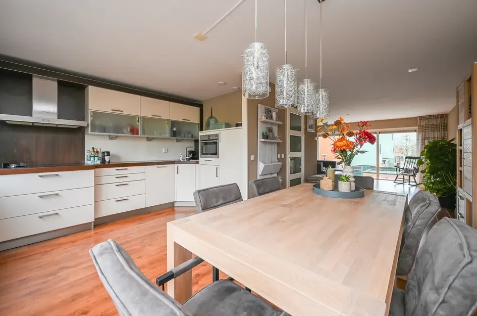 - De tussenwoning heeft een woonoppervlakte van 157 m² en beschikt over 6 kamers;
