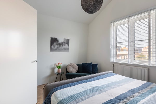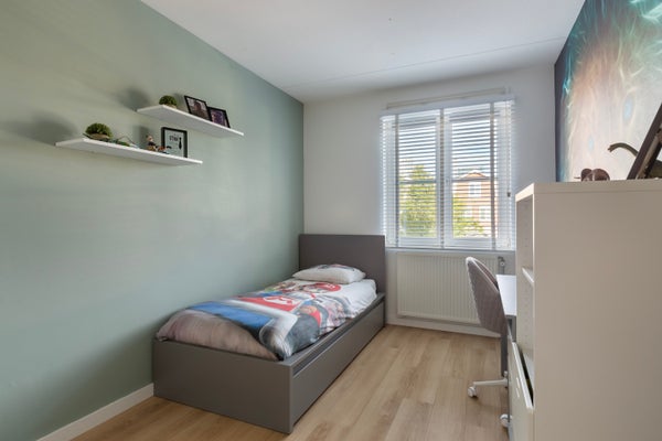 - De geschakelde woning heeft een woonoppervlakte van 144 m² en beschikt over 6 kamers, waarvan 5 slaapkamers;