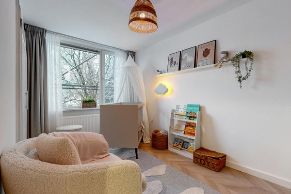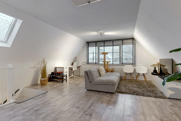 Deze prachtige eengezinswoning is perfect instapklaar en modern ingericht. De ruime, uitgebouwde woonkamer van 45 m² beschikt over een open haard en een grote glazen pui die uitkomt op de zonnige achtertuin. De halfopen keuken is van alle moderne apparatuur voorzien. Op de eerste verdieping zijn er drie slaapkamers en een recentelijk vernieuwde badkamer met ligbad en inloopdouche. De tweede verdieping is een grote open zolder, ideaal voor extra slaapkamers of een mancave. De achtertuin van bijna 14 meter, gelegen op het zuidoosten, is fraai aangelegd en voorzien van een stenen berging. Dit huis, gebouwd in 1961 en met een woonoppervlakte van 156 m², ligt in een rustige wijk dicht bij voorzieningen. De oplevering is in april 2026.