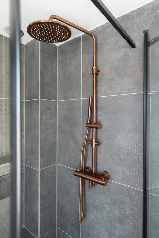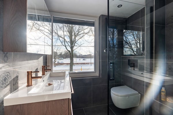 De badkamer heeft een flinke upgrade gehad en is uitgerust met alle wensbare gemakken: een ruime inloopdouche met regendouche, dubbele wastafel met moderne spiegels, een zwevend toilet en een stijlvolle handdoekradiator. De keuze voor hoogwaardige materialen geeft het geheel een rustgevende hotel-uitstraling. Hier begin je de dag fris en sluit je hem ontspannen af.