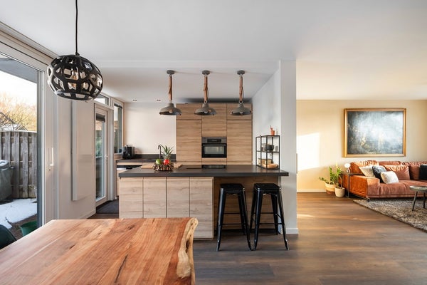 Of je nu een hobbykok bent of gewoon graag samenkomt met vrienden en familie, de recent geplaatste keuken zal je iedere dag verrassen. Het fraai vormgegeven kookeiland is een echte eyecatcher: uitnodigend, praktisch én stijlvol. Dankzij het innovatieve Bora-afzuigsysteem heb je geen storende afzuigkap—alles is slim geïntegreerd in het werkblad. Uiteraard ontbreekt het niet aan luxe inbouwapparatuur. Terwijl jij roert in de pannen, kletsen je gasten gezellig bij aan het barretje. Dit is dé plek waar je samenkomt, lacht en geniet.