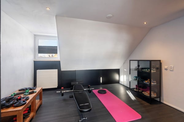 Op de tweede verdieping is nu een game- en sportkamer, maar hier kun je eenvoudig twee extra (slaap)kamers realiseren.