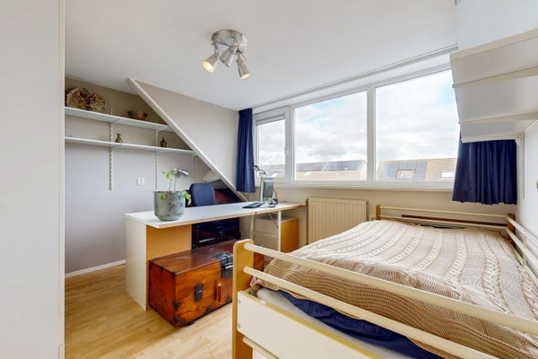 Deze ruime eengezinswoning, gebouwd in 1990, heeft een uitgebouwde woonkamer van 45 m² met een gezellige open haard en een glazen pui met openslaande deuren naar de 10 meter diepe achtertuin, gelegen op het oosten. Het huis beschikt over 5 grote slaapkamers, waaronder 3 op de eerste verdieping van respectievelijk 15 m², 10 m² en 8 m², en nog 2 op de tweede verdieping. De moderne, open hoekkeuken is van alle gemakken voorzien. Er zijn ook 11 zonnepanelen op het dak en er is altijd parkeergelegenheid op de eigen oprit voor eventueel 2 auto’s. Met een woonoppervlakte van 141 m² en een perceel van 161 m² biedt deze woning tal van mogelijkheden op een uitstekende locatie in de kindvriendelijke Molenwijk.