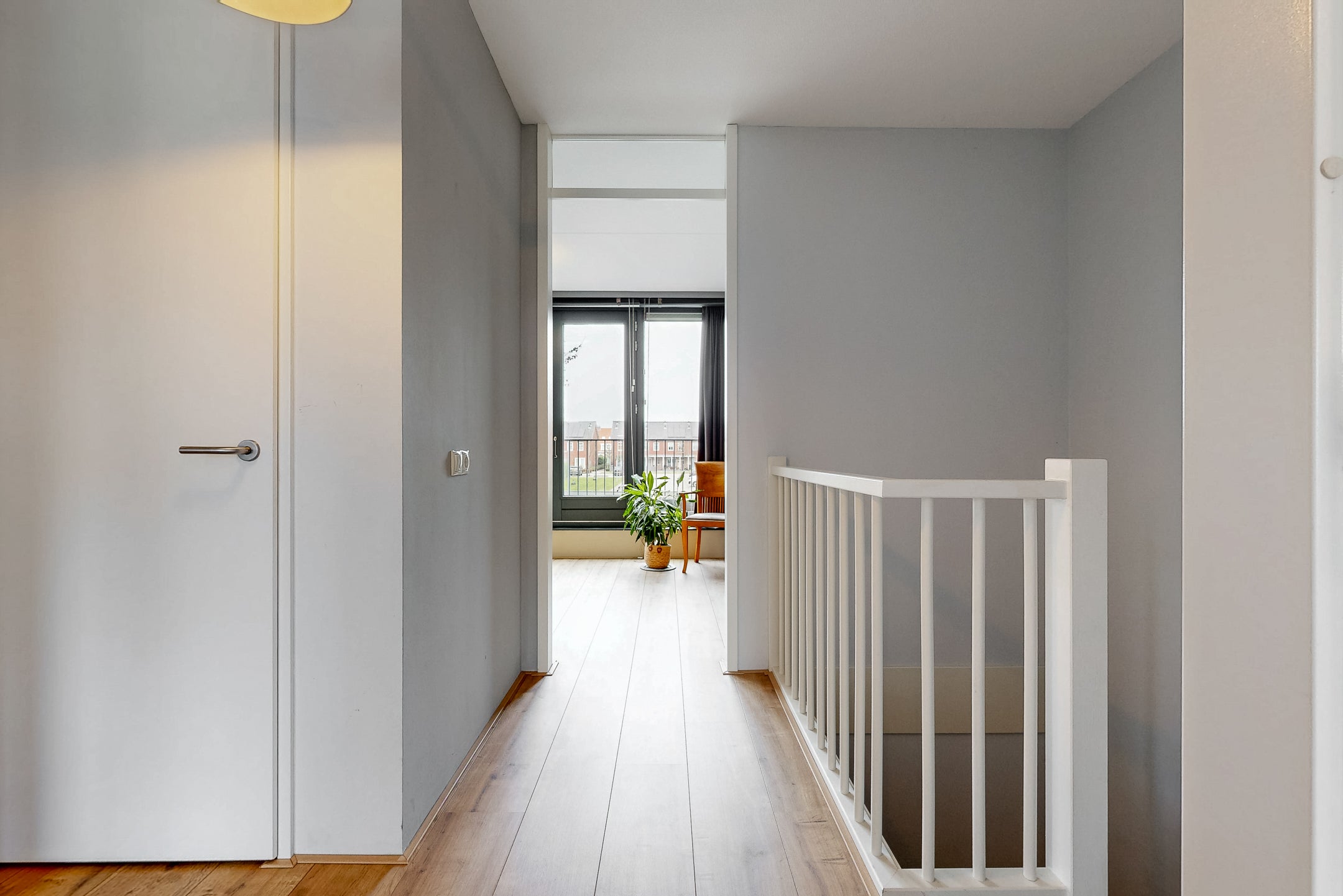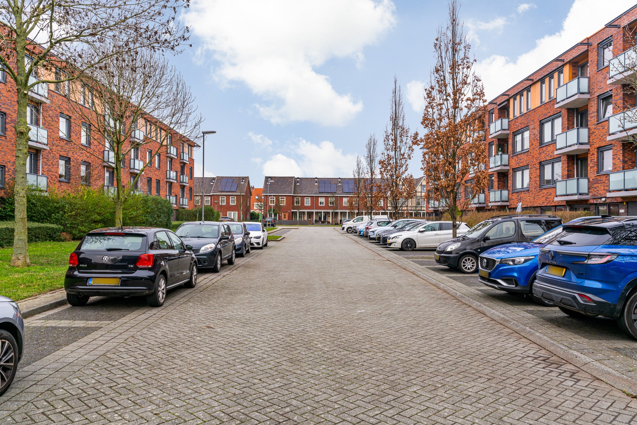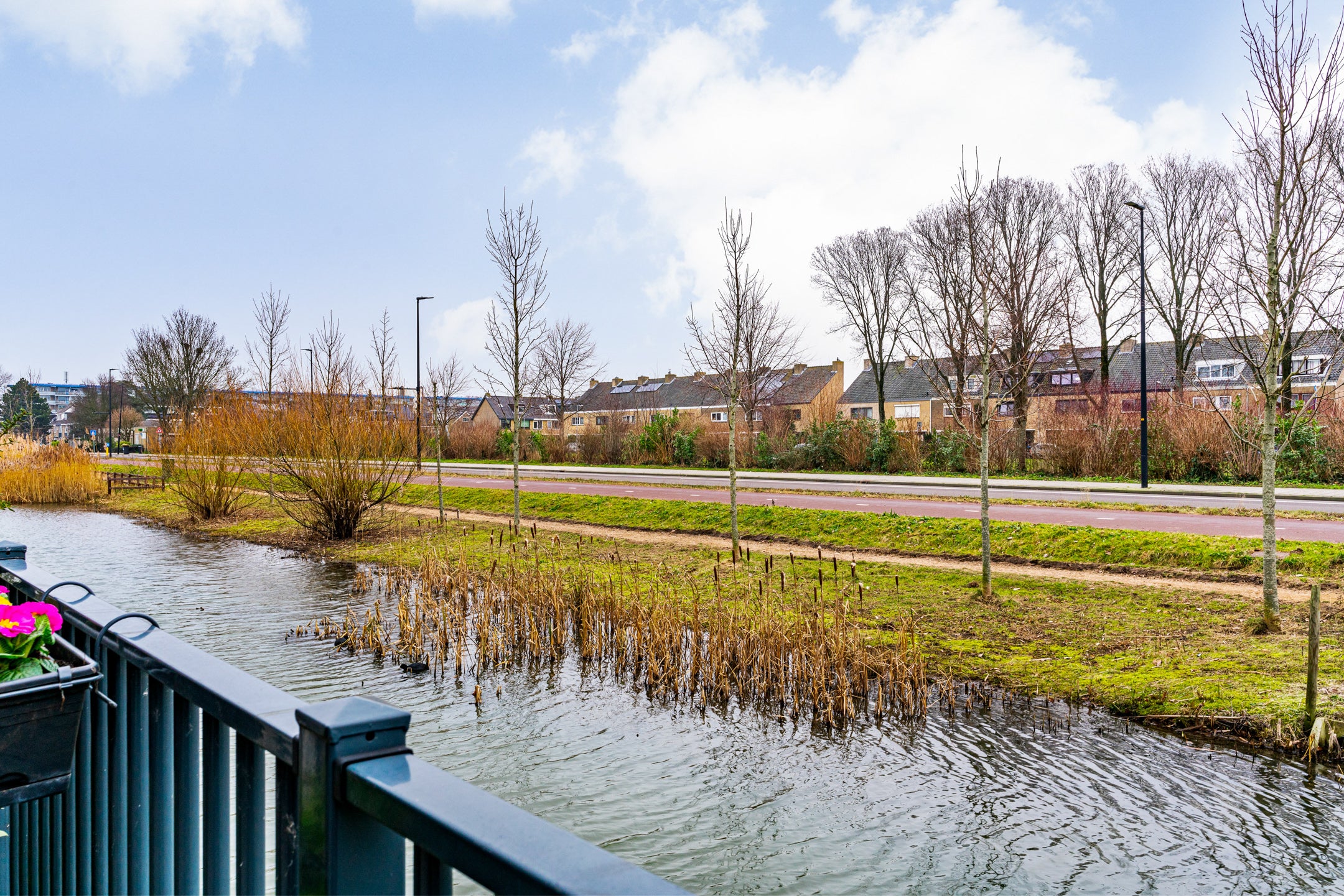 Deze moderne hoekwoning, gebouwd in 2019, biedt een ideaal verblijf met een zonnig terras aan het water en vrij uitzicht aan de achterzijde. Met een woonoppervlak van 130 m² is de indeling als volgt: een ruime hal met toegang tot een inpandige berging en toiletruimte, een open hoekkeuken met inbouwapparatuur en een riante woonkamer van 33 m² met openslaande deuren naar het terras. Op de eerste verdieping zijn er drie grote slaapkamers, waarvan de ouderslaapkamer een zijraam, een Frans balkon en airconditioning heeft. De badkamer is volledig betegeld en er is een aparte wasruimte. Het energielabel A, HR++ glas en zonnepanelen op het dak benadrukken de energiezuinigheid. Gelegen in de vernieuwde Burgemeesterswijk, dicht bij winkels en scholen.