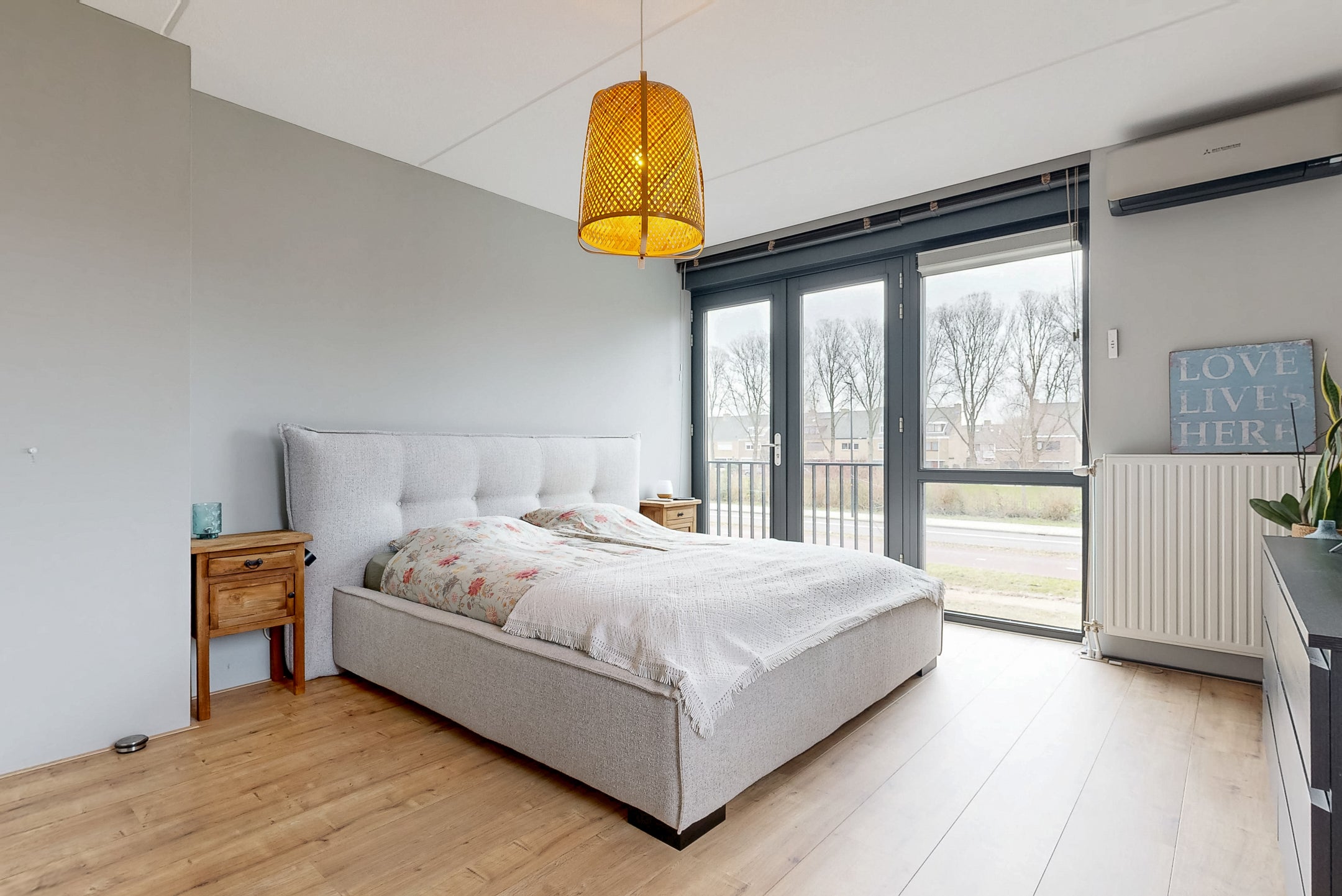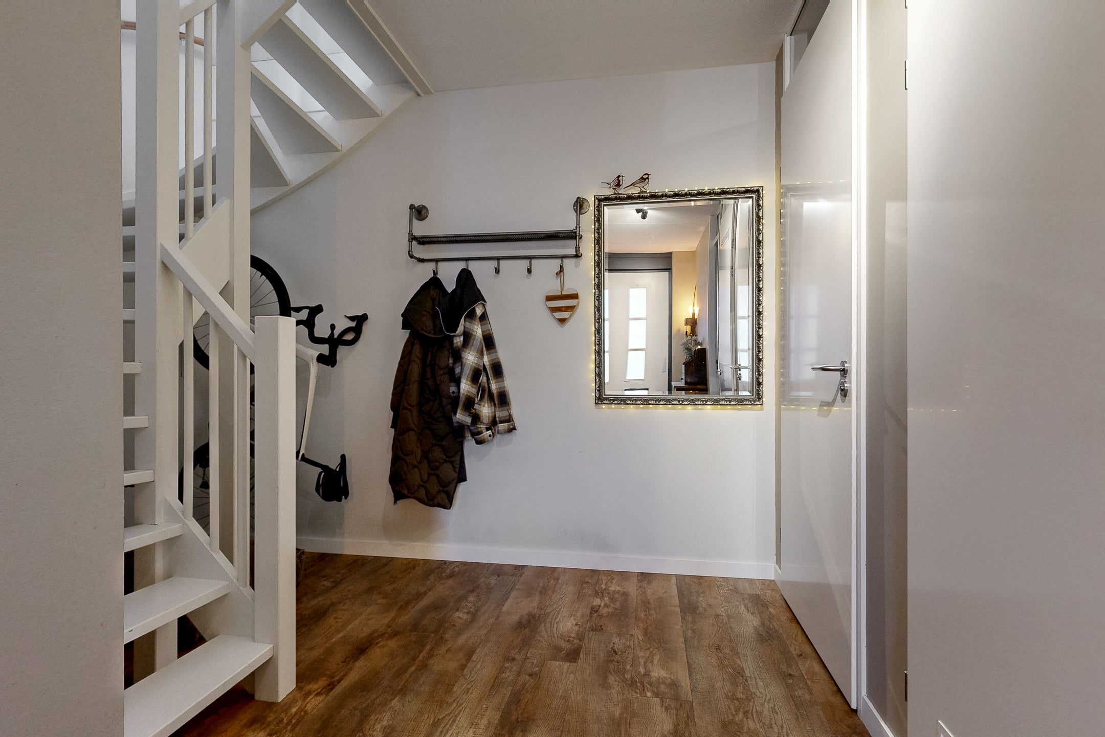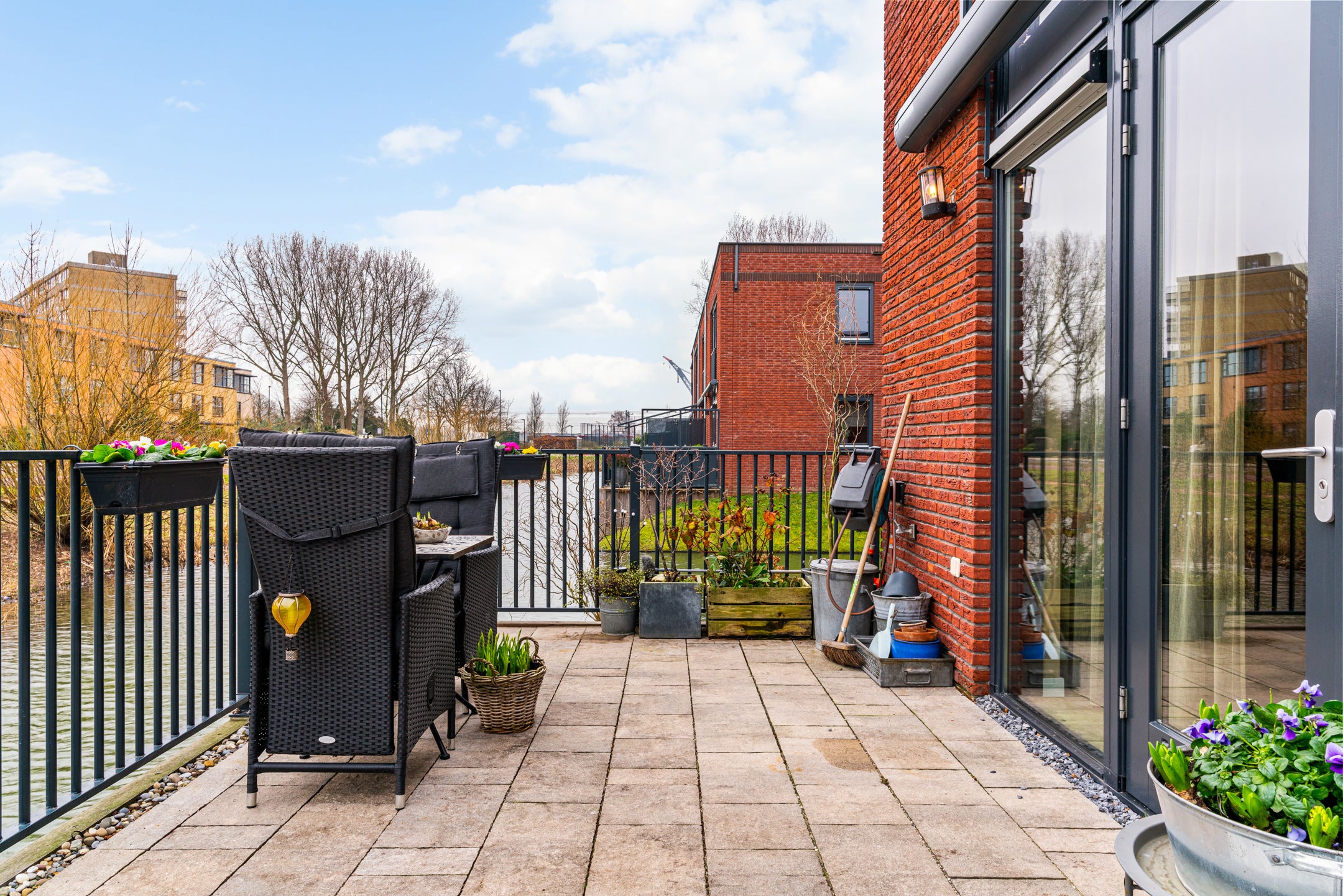 Deze moderne hoekwoning, gebouwd in 2019, biedt een ideaal verblijf met een zonnig terras aan het water en vrij uitzicht aan de achterzijde. Met een woonoppervlak van 130 m² is de indeling als volgt: een ruime hal met toegang tot een inpandige berging en toiletruimte, een open hoekkeuken met inbouwapparatuur en een riante woonkamer van 33 m² met openslaande deuren naar het terras. Op de eerste verdieping zijn er drie grote slaapkamers, waarvan de ouderslaapkamer een zijraam, een Frans balkon en airconditioning heeft. De badkamer is volledig betegeld en er is een aparte wasruimte. Het energielabel A, HR++ glas en zonnepanelen op het dak benadrukken de energiezuinigheid. Gelegen in de vernieuwde Burgemeesterswijk, dicht bij winkels en scholen.
