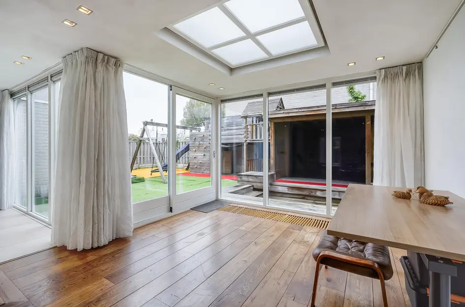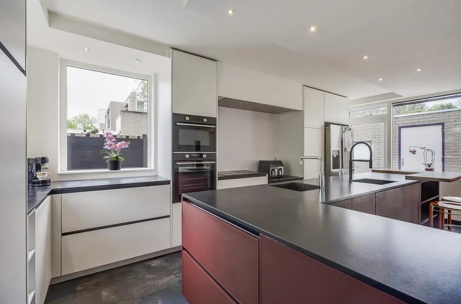 Deze royale 2-onder-1-kapwoning, gebouwd in 1990, biedt 213 m² woonoppervlakte en is perfect voor grote gezinnen of thuiswerkers. Met 6 slaapkamers en 3 badkamers, waarvan de begane grond badkamer in 2021 vernieuwd is, heeft deze woning alles wat je nodig hebt. De lichte hal leidt naar een ruime woonkamer, die aan de achterzijde is uitgebouwd en beschikt over een lichtkoepel en airconditioning. De moderne keuken, ook vernieuwd in 2021, is uitgerust met luxe apparaten en twee spoelbakken.