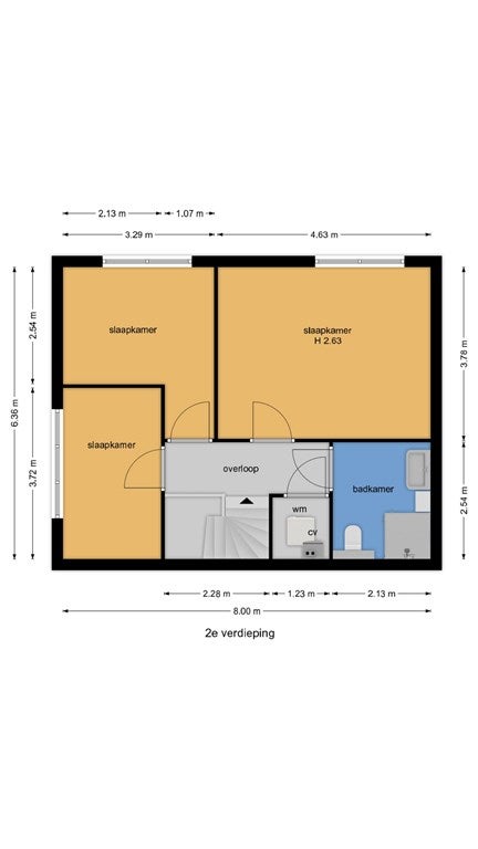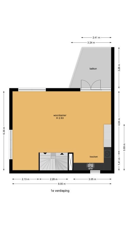 - Aanwezig (48 m², gelegen op het zuidoosten)