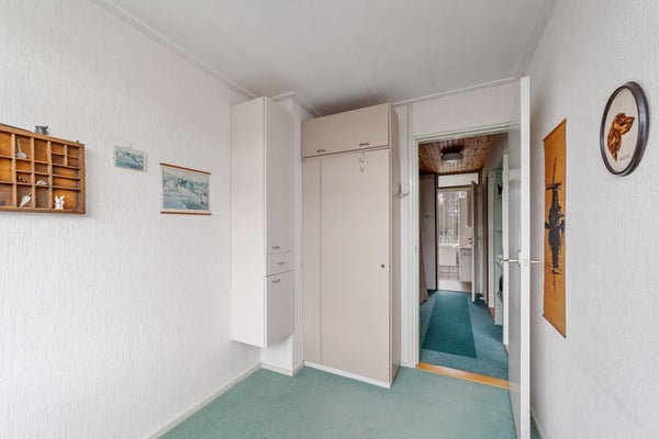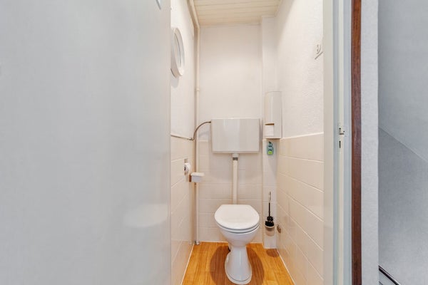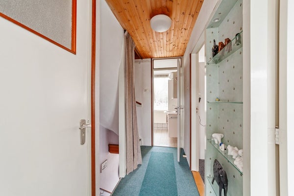 Toegang tot de woning via de voortuin. Entree in ruime hal met trapopgang, meterkast (7 groepen), garderoberuimte, bergkast en geheel betegelde toiletruimte.