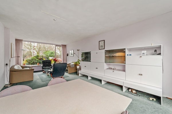 Ruime doorzonkamer met fraai uitzicht en eveneens een deur naar de tuin.