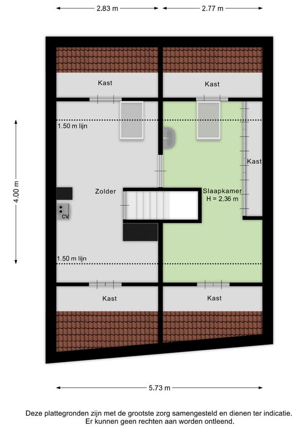 - Aanwezig (150 m², gelegen op het zuidoosten)