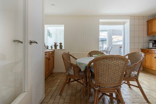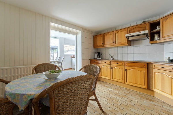 De keuken is netjes onderhouden en biedt volop mogelijkheden om deze geheel naar eigen smaak te moderniseren. De keuken is voorzien van een tegelvloer. Het keukenblok is voorzien van een inductiekookplaat en afzuigkap.