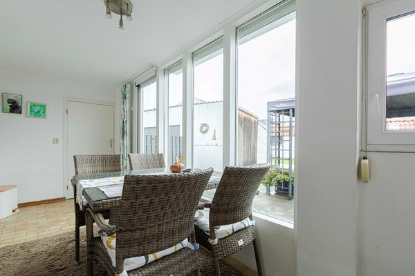 - Kozijnen deels kunststof en deels hout met dubbelglas;