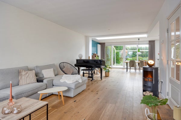 Deze uitgebouwde half vrijstaande woning ligt op een uitstekende locatie in de wijk "Campagne". Bij binnenkomst is er een hal en een modern half betegeld toilet. De royale woonkamer biedt toegang tot het terras en de zonnige tuin op het zuiden. De luxe open keuken is voorzien van een kookeiland en moderne apparatuur zoals een 4-pitsinductiekookplaat, afzuigkap, combimagnetron, koelkast en vaatwasser. De woning heeft 4 slaapkamers, waarvan 2 met vaste muurkasten, en een moderne luxe badkamer met wastafel, toilet en ligbad. Op de tweede verdieping komt u via een vaste trap in de overloop met wastafel, 2 bergingen en de vierde slaapkamer met dakkapel en laminaatvloer. Ook is er een vrijstaande stenen garage met een diepe oprit voor meerdere auto’s.