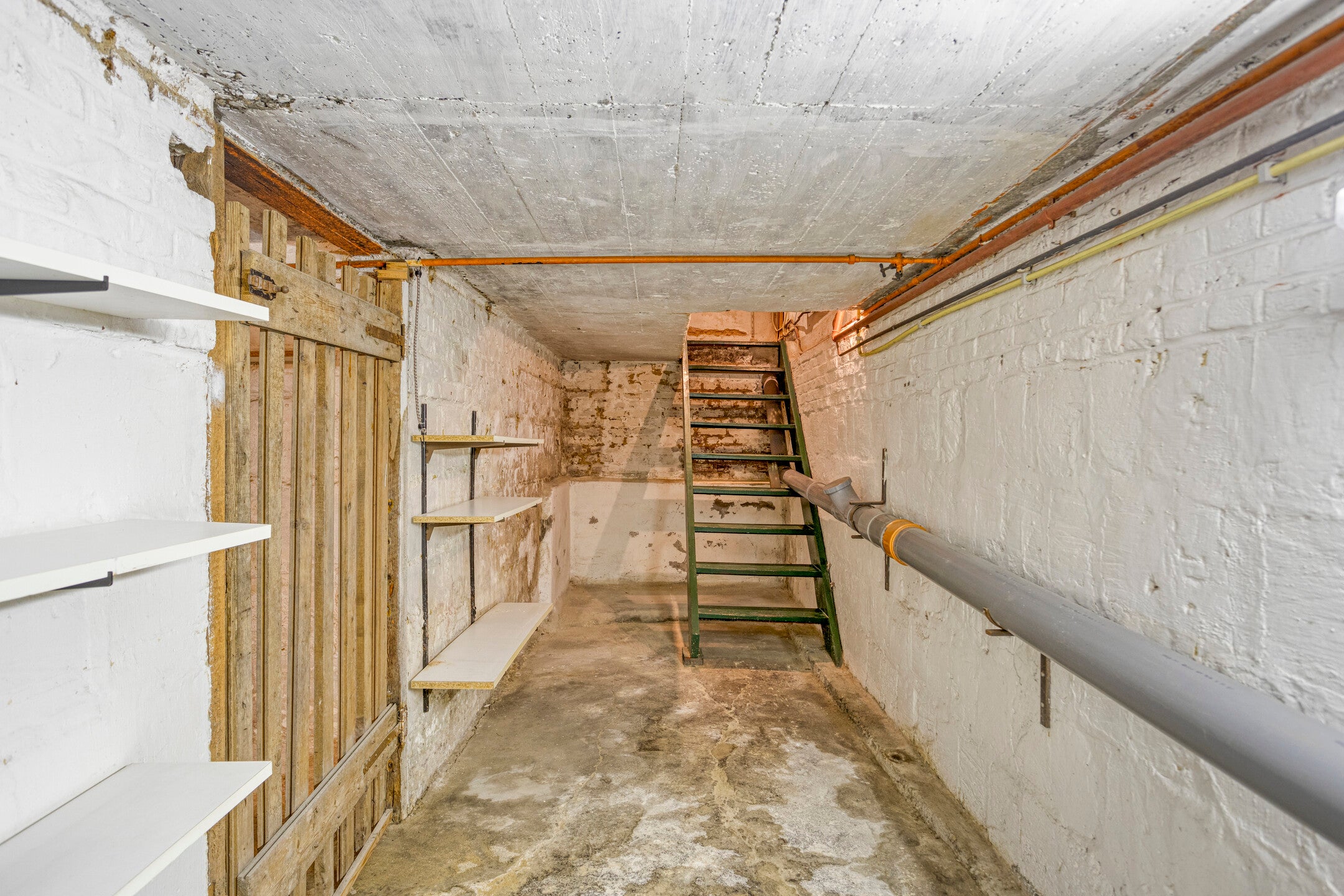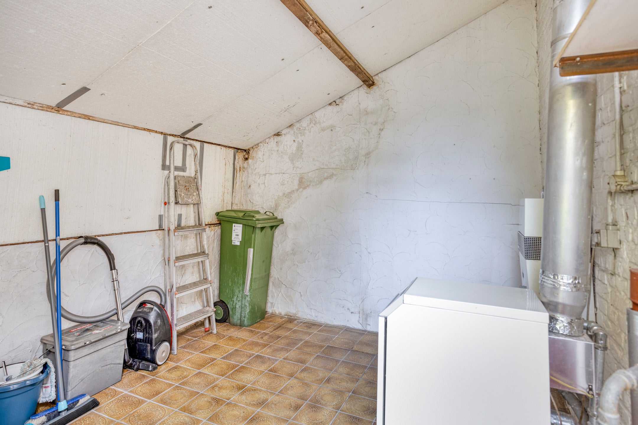 De indeling omvat een souterrain met twee kelders, waarvan één met witgoedaansluiting en de ander als voorraadkelder. Op de begane grond kom je binnen in de hal met tegelvloer, die leidt naar een betegeld toilet. De woonkamer met laminaatvloer en de open keuken zijn van moderne gemakken voorzien, met onder andere een koelkast, vriezer, gassookplaat en afzuigkap. De keuken biedt toegang tot de tuin. Verder is er een slaapkamer en een badkamer toegankelijk vanuit zowel de hal als de slaapkamer, compleet met douche, wastafelmeubel en aansluiting voor de wasmachine.