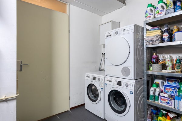 De berging is voorzien van een plavuizen vloer en op dit moment deels in gebruik als wasruimte.