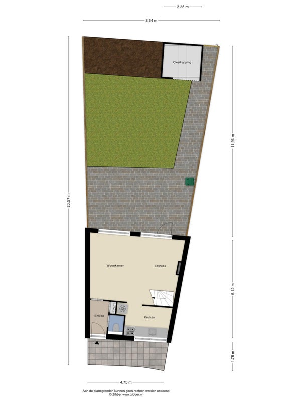 - Aanwezig (94 m², gelegen op het noordoosten)