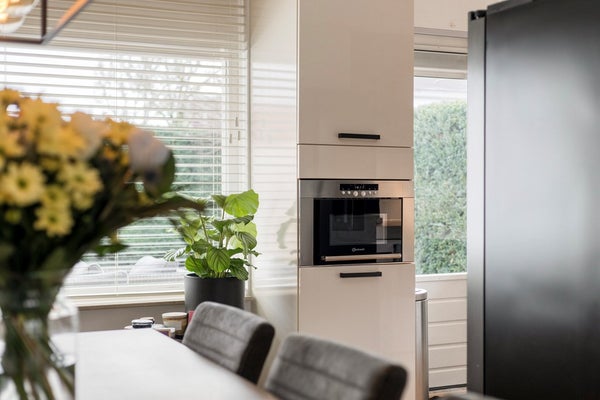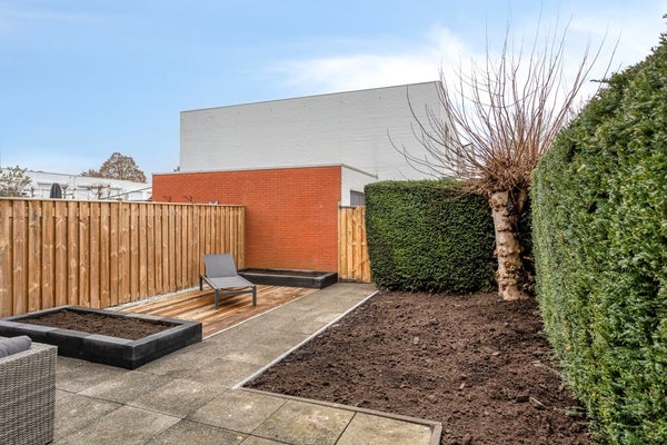 Vanuit de keuken heb je directe toegang tot de onderhoudsvriendelijk aangelegde, zonnige tuin. Het terras is voorzien van een zonnescherm en biedt volop privacy. Achter in de tuin bereik je de oprit en de garage.