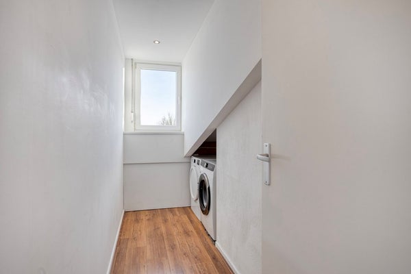 Wasruimte met aansluitingen voor wasmachine en droger, hier bevindt zich tevens de cv-ketel (2017) en de mechanische ventilatie.