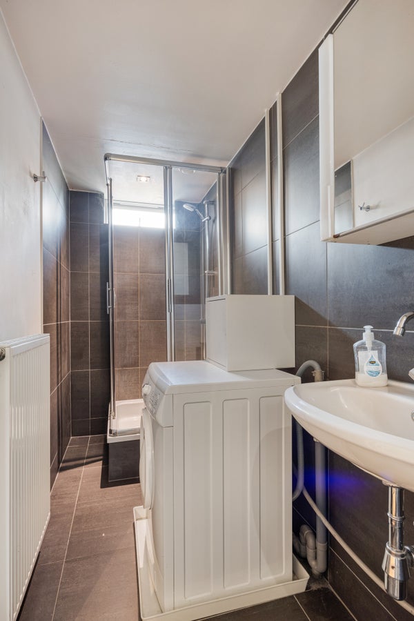 Deze karakteristieke tussengelegen herenhuis is een interessante beleggingskans. Op de begane grond bevindt zich een commerciële ruimte van ongeveer 61 m², die goed toegankelijk is voor het publiek en een aparte entree heeft. Deze ruimte is praktisch ingedeeld met behandelkamers, een pantry met keukenblok en een eigen toilet. Op de eerste verdieping van ca. 56 m² vindt u een hal, een woonkamer met open keuken, een slaapkamer en een badkamer met wastafel, douche en toilet, evenals een berging met aansluiting voor een wasmachine en de cv-ketel. De tweede verdieping van ca. 51 m² biedt een badkamer met douche, toilet, wastafel en een aansluitingsmogelijkheid voor een wasmachine, en een vide met cv-ruimte, bereikbaar via een vaste trap. Het pand wordt compleet verhuurd en in 'as-is' staat overgedragen.