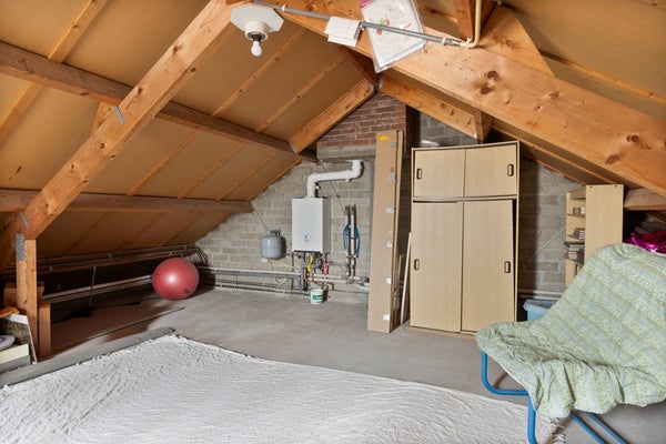 Via een vaste trap is de tweede verdieping bereikbaar. Deze verdieping is momenteel ingericht als bergzolder (36m²) en biedt volop bergruimte. Hier bevindt zich tevens de opstelplaats van de cv-installatie.