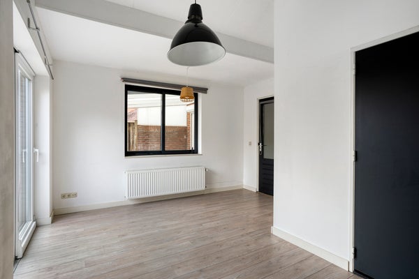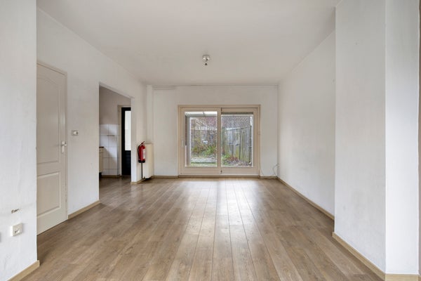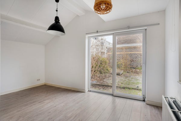De woonkamer is dankzij de verzorgde aanbouw aan de zijkant van de woning opgedeeld in twee sfeervolle gedeelten. De zitkamer in de aanbouw geniet van veel natuurlijk licht door de grote raampartijen en schuifdeur, en krijgt een ruimtelijk karakter door het hoge plafond. Ook biedt de aanbouw directe toegang tot de achtertuin. De begane grond is afgewerkt met een mooie laminaatvloer. Op de begane grond (aanbouw) bevindt zich een ruime slaapkamer met aangrenzende badkamer, voorzien van een douche, wastafel en toilet — ideaal voor gelijkvloers wonen.
