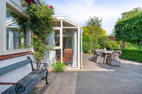 - Je kunt 2 auto's voor de garage kwijt, tevens 1 achter de poort onder de carport.
