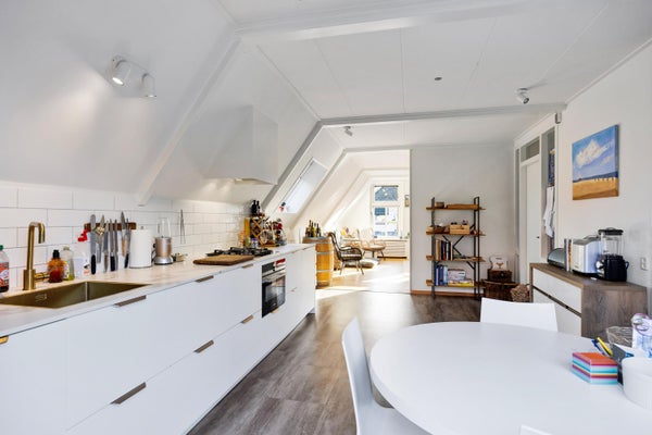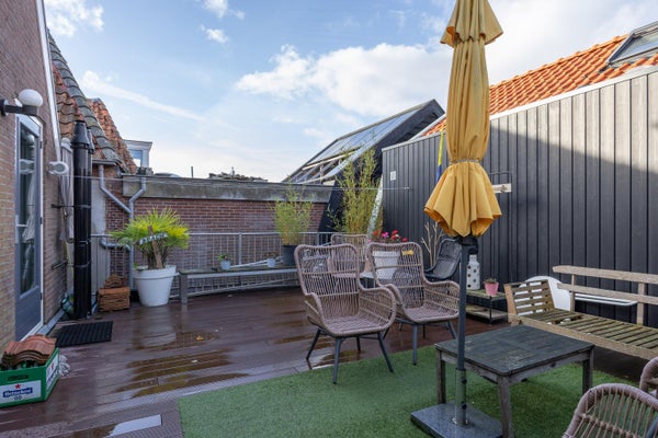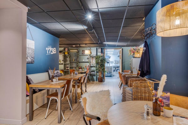 In het centrum van Makkum staat een goed onderhouden herenhuis te koop, bestaande uit een commerciële ruimte en een bovenwoning. Op de begane grond bevindt zich een restaurant van ongeveer 130 m² met meer dan 60 zitplaatsen, een keuken, en een terras van 75 m². De bovenwoning heeft een eigen ingang en biedt op de eerste verdieping een woonkamer van bijna 35 m², een luxe open keuken en een groot dakterras van 36 m². De tweede verdieping omvat drie slaapkamers en een moderne badkamer. Dit pand, dat in 2021 grondig is verbouwd, heeft energielabel A+ voor de commerciële ruimte en D voor de bovenwoning. Het totale woonoppervlak bedraagt 287 m² op een perceel van 134 m².