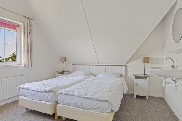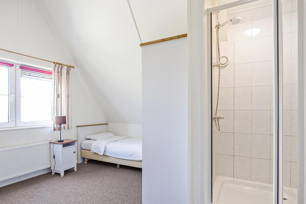 Deze XL-Beachvilla biedt ruimte aan 6 personen en ligt aan klein vaarwater met verbinding naar het IJsselmeer. De woning, oorspronkelijk ontworpen voor 8, heeft een slaapkamer op de begane grond en twee slaapkamers op de eerste verdieping, inclusief een slaapkamer met eigen douche. De grote badkamer is luxe uitgevoerd met een hoekbad en vloerverwarming. De gezellige woonkamer van ± 23,5 m² heeft dubbele tuindeuren en een moderne gashaard. De woning ligt op een perceel van 605 m² en heeft een eigen steiger. De tuin is privé en groen, met een terras op het zuidwesten. Gelegen aan een rustige weg, en op korte afstand van het IJsselmeerstrand en de voorzieningen van Makkum. Dit is een ideale plek voor recreatie.