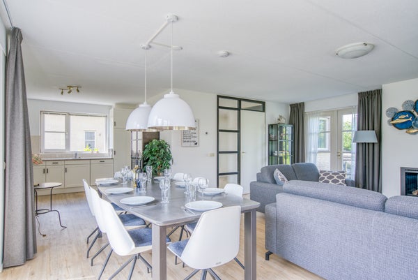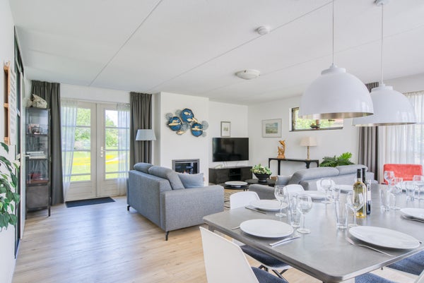 Deze gemoderniseerde en luxe 8-persoons Duinvilla is gelegen op het Beachresort Makkum en staat op 610 m² eigen grond. Op de begane grond vind je een lichte woonkamer met dubbele tuindeuren en een open keuken, een slaapkamer met eigen badkamer, een relaxruimte met sauna en douche, en een bijkeuken. De eerste verdieping herbergt drie slaapkamers en een grote tweede badkamer. De woning, met een woonoppervlakte van ± 133 m², is volledig geïsoleerd en heeft een energieklasse B. De tuin rondom beschikt over drie terrassen en biedt toegang tot een gemeenschappelijk groen met een privé-strandje. Er is parkeergelegenheid voor twee auto's met een oplaadpunt. De jaarlijkse parkkosten bedragen circa € 3.380,-.