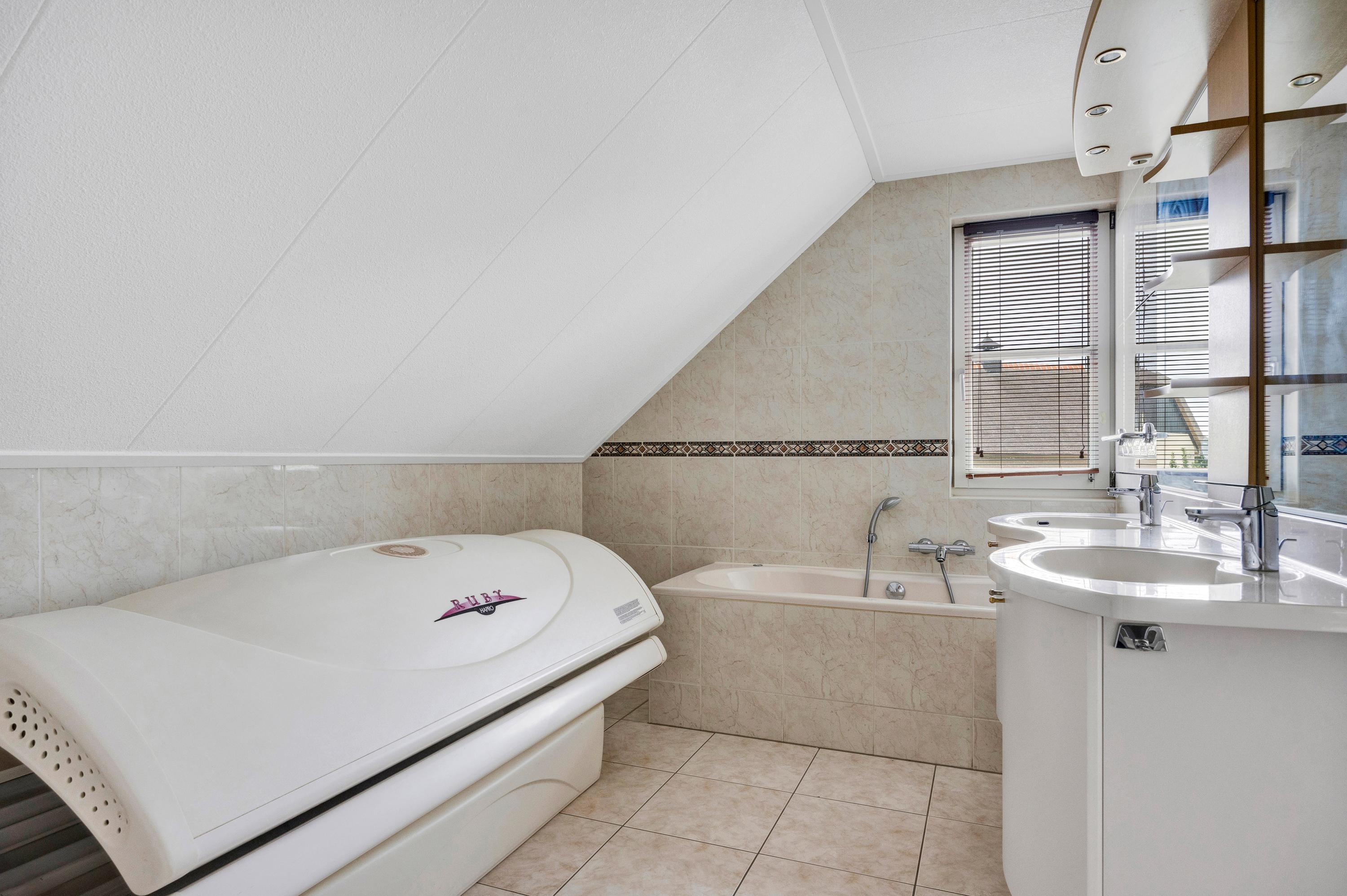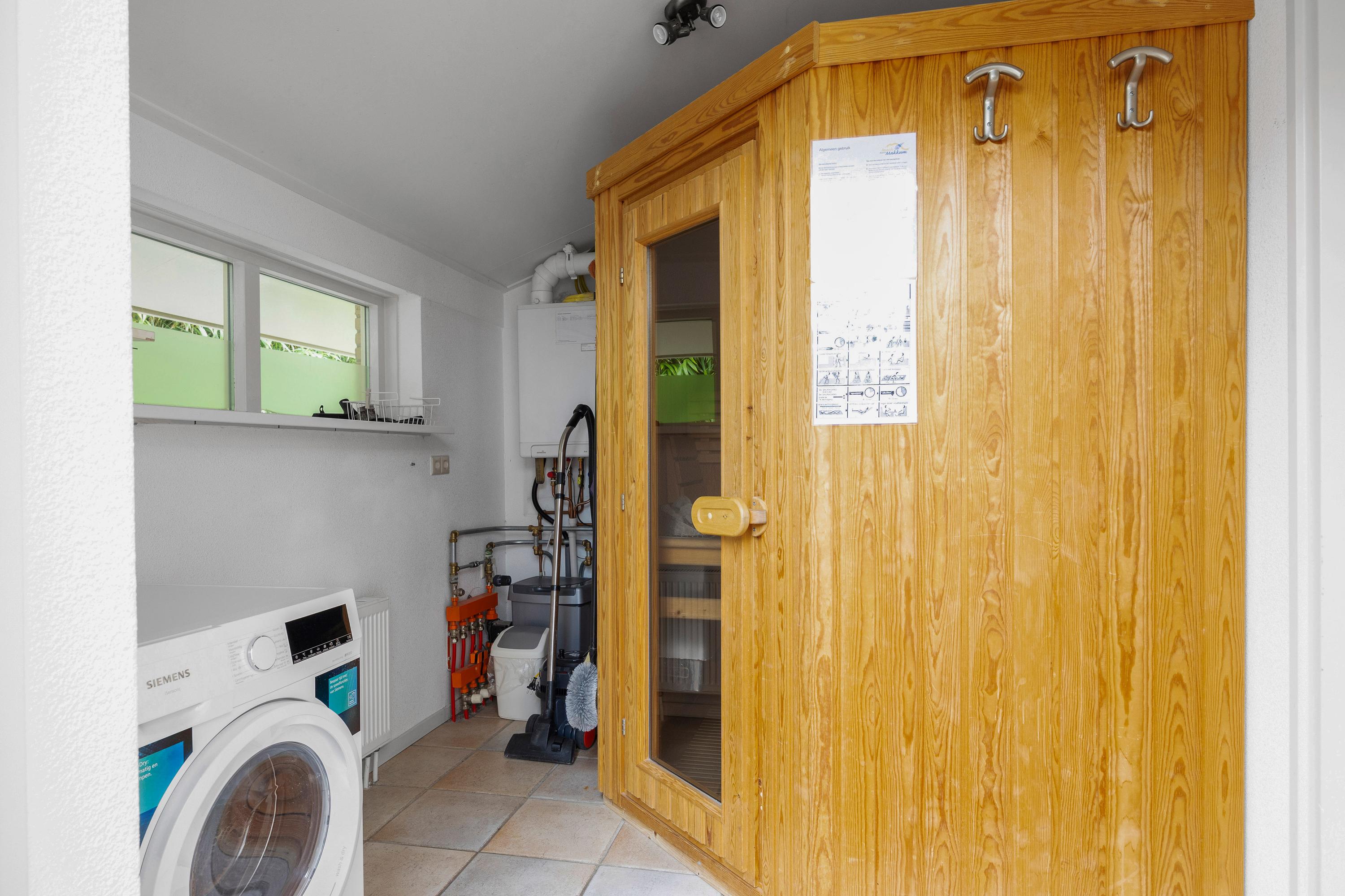 Deze goed onderhouden, vrijstaande recreatiewoning, type Duinvilla, ligt op 508 m² eigen grond en biedt plaats aan 6 personen. De woning heeft een ruime woonkamer van meer dan 36 m² met een gashaard en dubbele tuindeuren die leiden naar een terras op het zuidoosten en een beschut terras op het zuidwesten. De U-vormige open keuken is van alle gemakken voorzien en er is een bijkeuken met een sauna. Op de bovenverdieping bevinden zich drie slaapkamers en een grote badkamer met een bubbelbad. Buiten is er een mooie tuin die overloopt in het groen van het park, inclusief een buitendouche. De aangebouwde garage biedt ruimte voor een auto. Bovendien is er een eigen ligplaats aan het IJsselmeer beschikbaar. Deze woning is perfect voor gezinnen en recreatief gebruik.