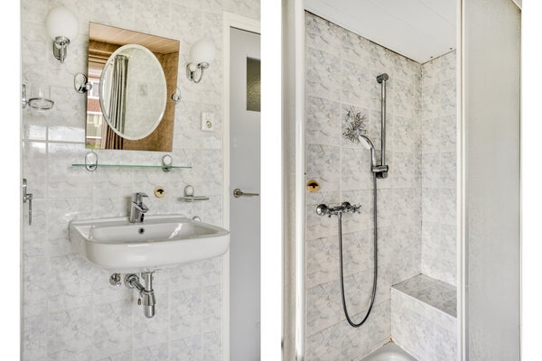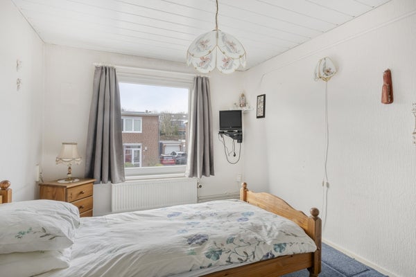 Op de eerste verdieping bevinden zich drie slaapkamers en een opvallend ruime badkamer, voorzien van een ligbad, douche, tweede toilet en wastafel. Een comfortabele en complete badkamer waar functionaliteit voorop staat. De voormalige badkamer dient thans als bergruimte en zou prima dienst kunnen doen als wasruimte.