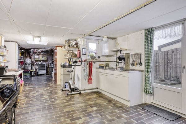 Via de entree bereik je de hal met toiletruimte, meterkast, trapopgang en toegang tot de praktische kelder, ideaal voor provisie of extra opslag. De lichte woonkamer met schouwpartij staat in verbinding met de tuin en keuken, welke voorzien is van een rechte opstelling met de nodige apparatuur. Vanuit de woonkamer alsook de garage annex bijkeuken is er toegang tot de knusse achtertuin.