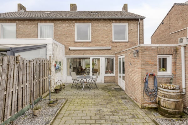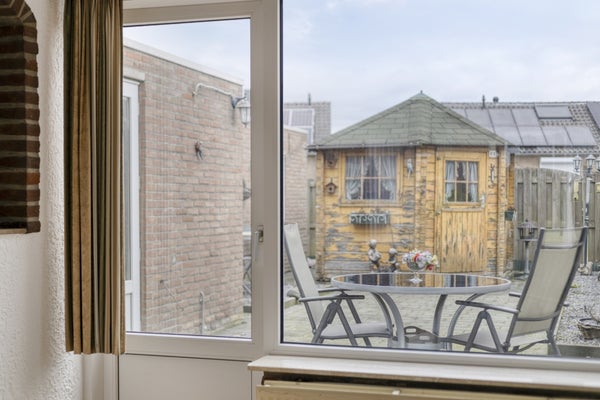 De achtertuin is knus en momenteel grotendeels verhard, wat zorgt voor weinig onderhoud en volop mogelijkheden om deze naar eigen smaak in te richten.