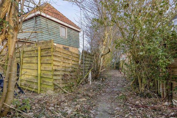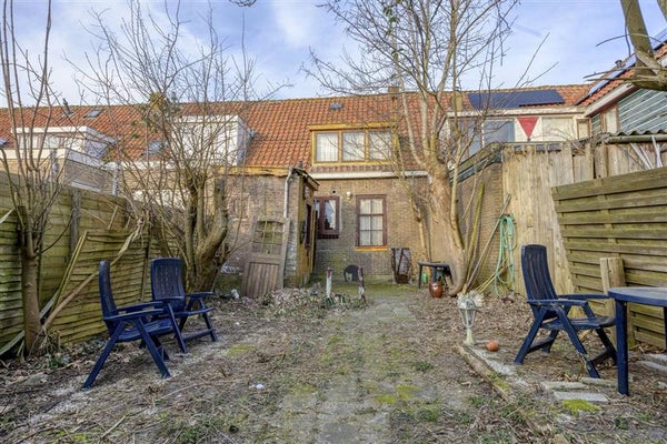 De woning beschikt over een voortuin op het westen en een opvallend ruime L-vormige achtertuin op het oosten, wat mogelijkheden biedt voor herinrichting of uitbreiding van de buitenruimte.