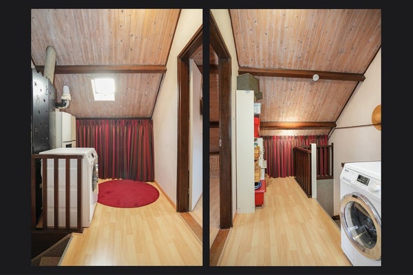 Op de voorzolder zijn de wasmachine en CV opgesteld.