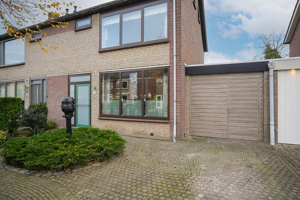 Aan de Slingerlandstraat in Meerkerk staat deze geschakelde twee-onder-een-kapwoning uit 1972. De woning is goed onderhouden.