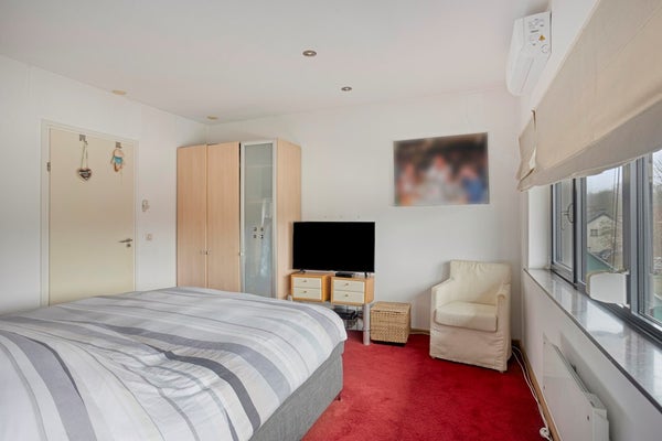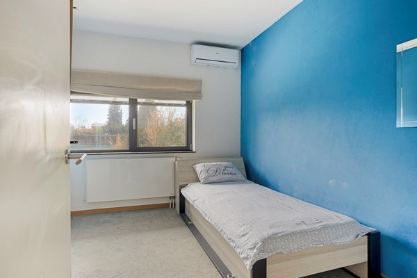 De overloop geeft toegang tot drie slaapkamers en de ruime badkamer. Slaapkamer 1 is gelegen aan de voorzijde van de woning en ca. 23 m2 groot. Deze kamer is voorzien van vloerbedekking en een vaste kastenwand. Slaapkamer 2 ligt aan de achterzijde en is ca. 12 m2 groot. Deze kamer is voorzien van een laminaatvloer. Slaapkamer 3 is tevens aan de achterzijde gelegen en is ca. 11 m2 groot. Deze slaapkamer is voorzien van vloerbedekking. Alle slaapkamers zijn verder voorzien van aluminium kozijnen met dubbele beglazing en airconditioning.