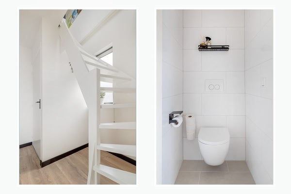 • Separate en geheel betegelde toiletruimte met wandcloset. Deze toiletruimte is in 2025 geheel vernieuwd.