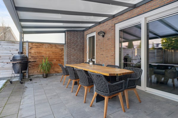 Met een garageruimte voor hobby of werk en een verzorgde tuin met overkapping, biedt dit huis zowel ruimte voor ontspanning als de mogelijkheid om het aan te passen aan jouw wensen.
