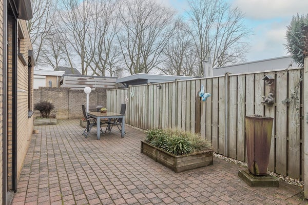 De tuin is een fijne plek om te genieten van rust, groen en het buitenleven. Dankzij de verschillende terrassen vind je op elk moment van de dag een prettige plek, in de zon of juist in de schaduw. De tuin is verzorgd aangelegd met een mooie mix van klinkers en vaste planten. Het is een buitenruimte met veel mogelijkheden, voor nu en later.
