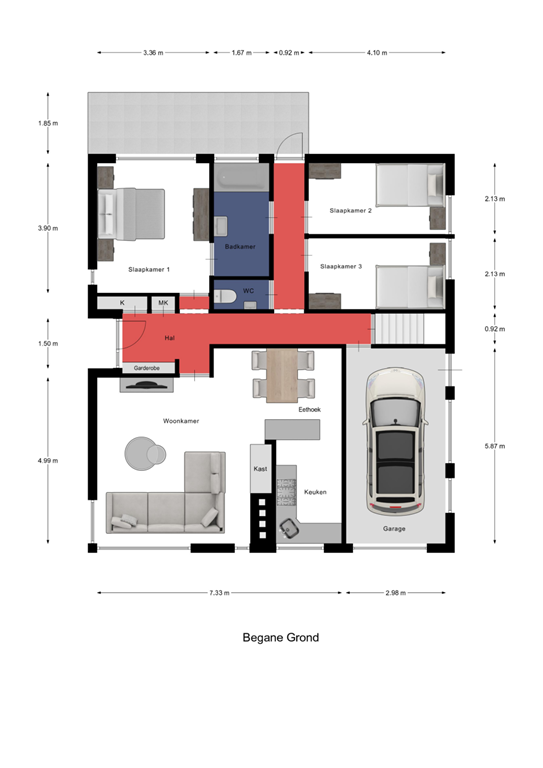 De garage kun je gebruiken als opbergruimte of voor het stallen van je auto. Ook kun je er een werkplaats of praktijkruimte aan huis van maken. En mocht je nog meer ruimte willen, dan kun je de garage vergroten of een carport maken.