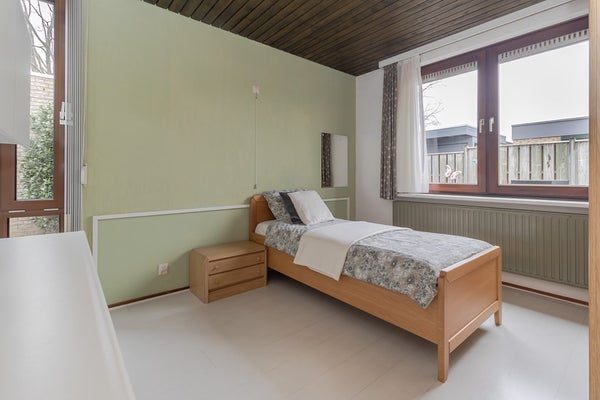 Op de begane grond heb je 3 praktische slaapkamers. De grootste slaapkamer ligt naast de badkamer. De witte laminaatvloer zorgt voor een warme uitstraling en is eenvoudig te onderhouden. De ramen zorgen voor veel licht en door de draaikiepmogelijkheid kun je goed ventileren.