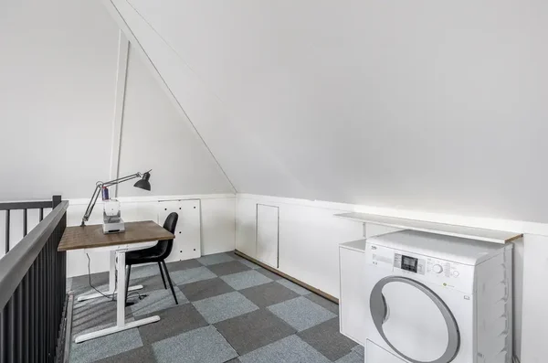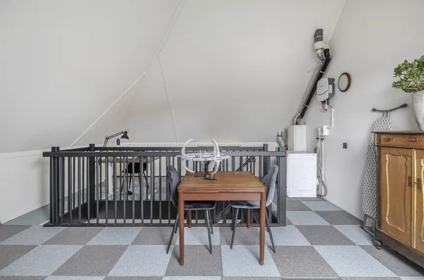 Op de eerste verdieping zijn er twee slaapkamers, met een grote hoofdslaapkamer van circa 19m², en een moderne badkamer met inloopdouche en ligbad. De zolder biedt extra ruimte en daglicht.